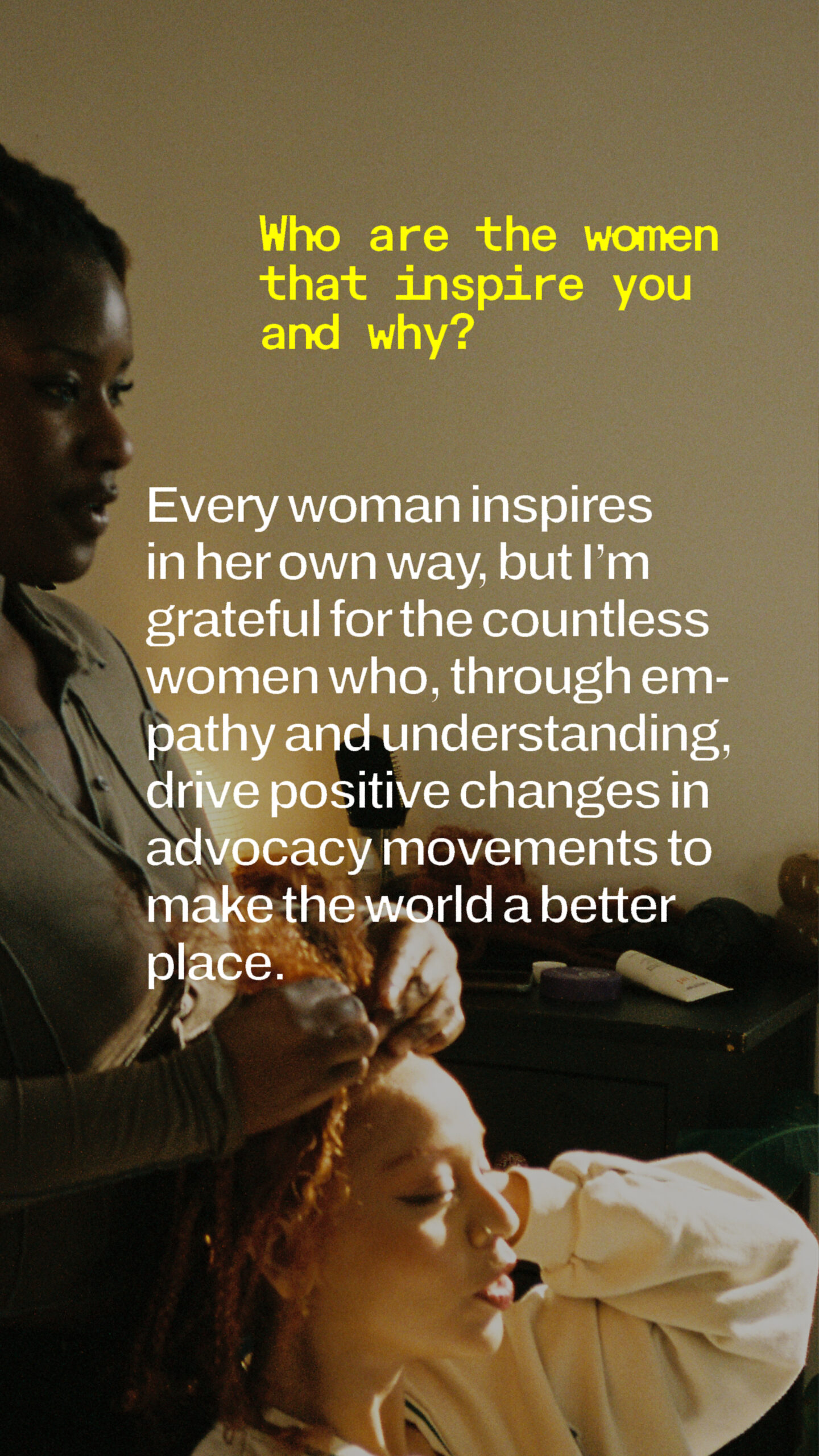 The project was rooted in honesty and connection, and amplified by Nappy Child’s openness. The rich visual storytelling facilitated meaningful dialogue, aligning with the core spirit of International Women’s Day.